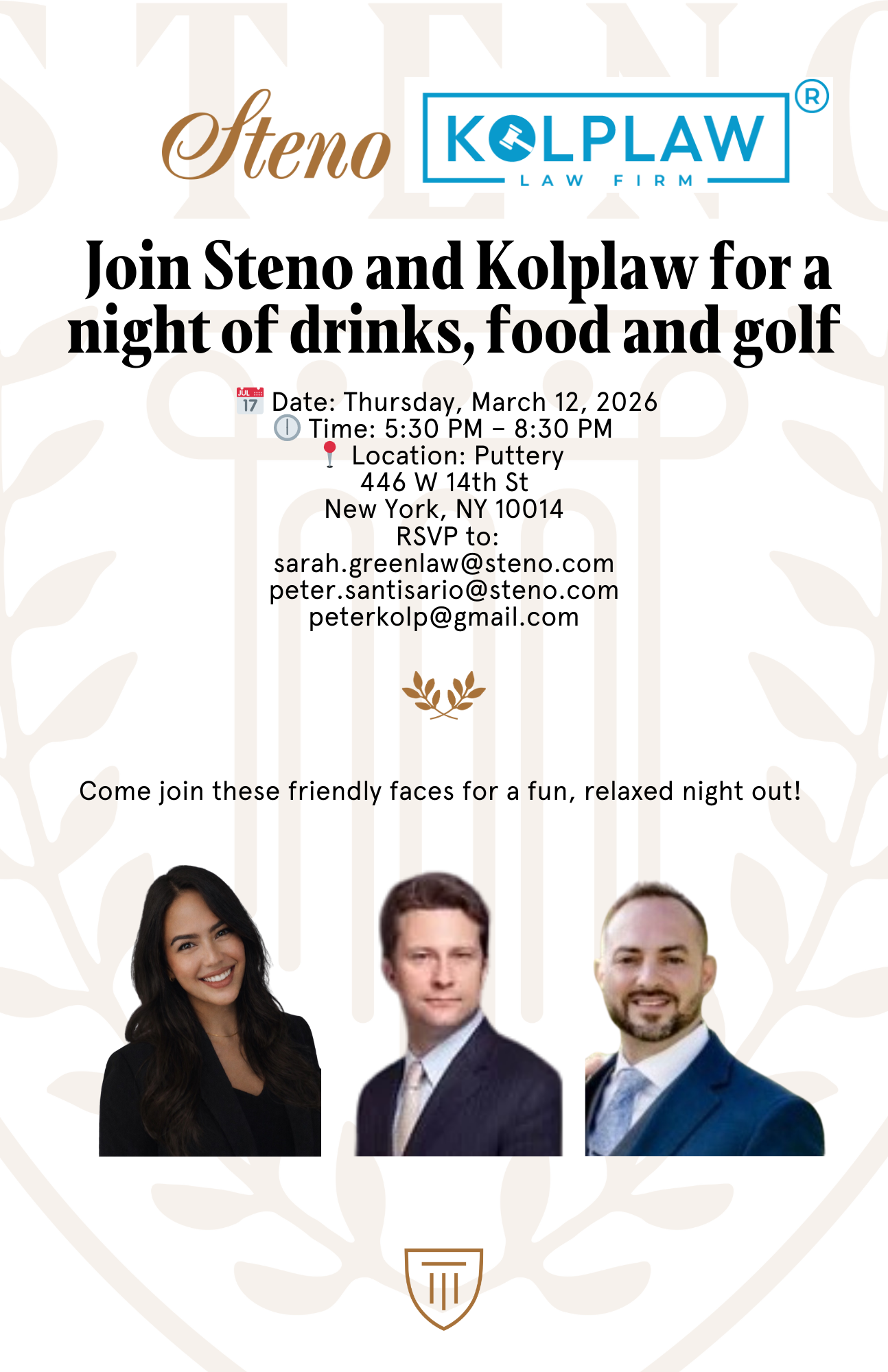 3rd floor of puttery - Pete Peter W. Kolp, Esq. NYC TRIAL ATTORNEY _________________________ Peter W. Kolp P.C. 26 Court Street, Suite 1714 Brooklyn, NY 11242 Office: (646) 801-7850 Cell: (917) 601-4589 Peter@KolpLaw.com www.KolpLaw.com The information contained in this email transmission is meant only for the individual it is addressed to. The transmission of this email is not intended to breach the attorney-client privilege nor any other privilege that may apply. If this transmission is received by someone other than the addressee, please immediately email the sender and delete the email.